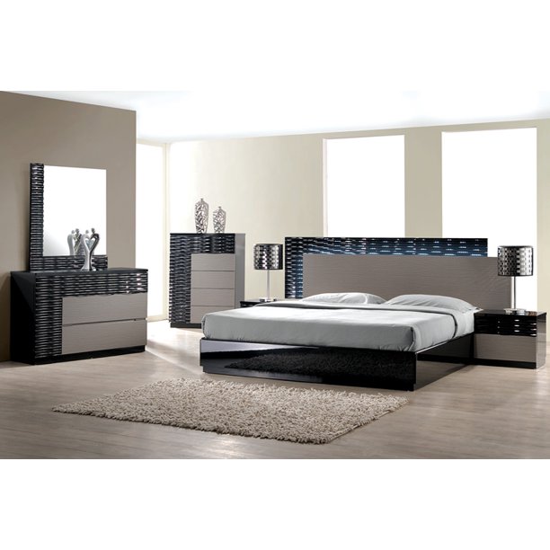 Black gloss and grey gloss finish modern style premium bedroom set durable construction quality soft close drawers set includes: King size bedroom sets with marble tops. Your sleep can only be improved by a when you choose a king size bedroom set from home furniture plus bedding, your nights are sure to be more comfortable. Your bedroom is your oasis, the haven from your busy, sometimes hectic life.